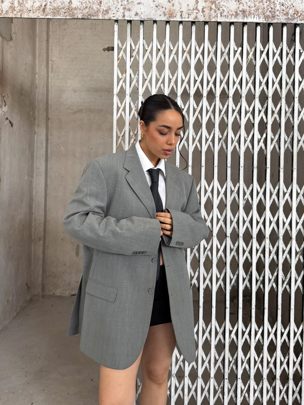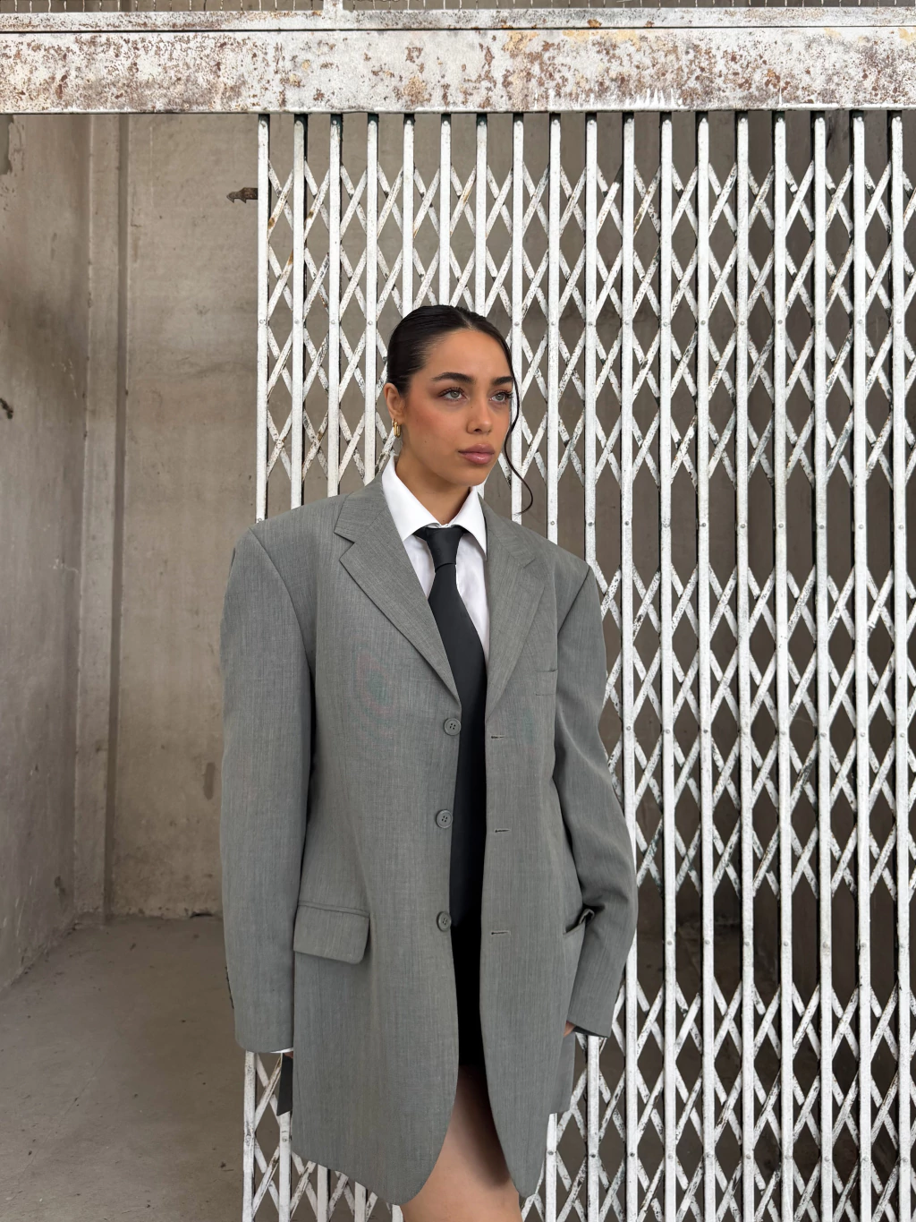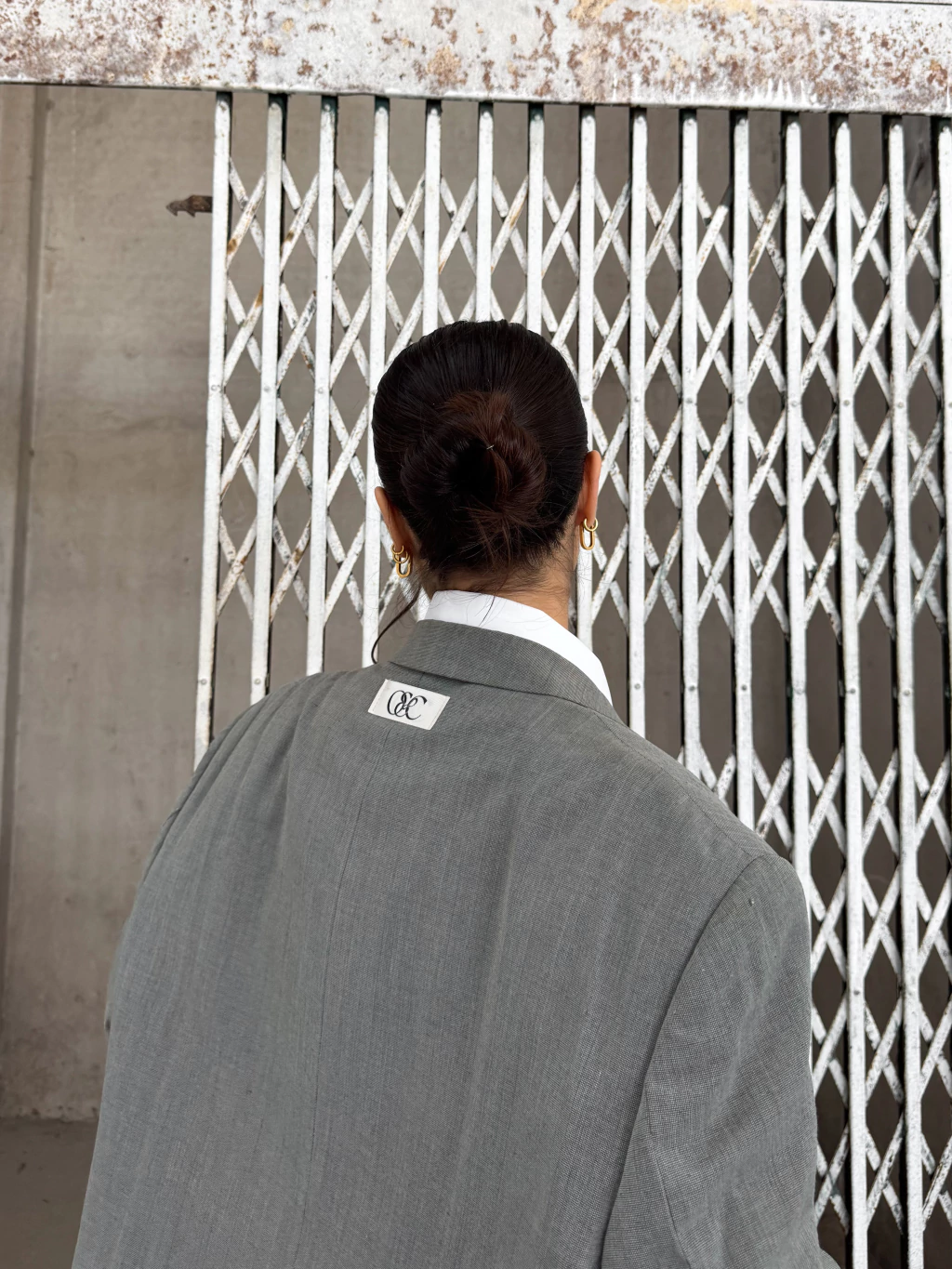 Descubrí el Benedetta Vintage Blazer, una pieza de archivo que combina el poder del tailoring con la elegancia atemporal. Confeccionado utilizando textiles de alta calidad en color gris claro con finas lineas casi imperceptibles en color celeste. Presenta hombros estructurados, forrería interna satinada y botones a tono. Esta prenda fue seleccionada para formar parte de nuestro archivo por su calidad, terminaciones impecables y diseño atemporal. La tela es clásica sastrera.