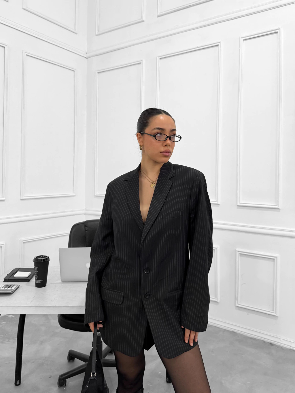 Descubrí el Blazer Bossy, una pieza de archivo que combina el poder del tailoring con la elegancia atemporal. Confeccionado en color negro con finas lineas en color blanco y bordó, presenta hombros estructurados, forrería interna satinada y botones a tono. Esta prenda fue seleccionada para formar parte de nuestro archivo por su calidad, terminaciones impecables y diseño atemporal.
