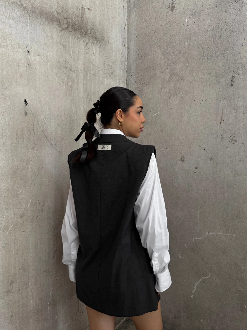 Descubrí el Chérie Vintage Vest, una pieza de archivo que combina el poder del tailoring con la elegancia atemporal. Confeccionado utilizando un textil de alta calidad en color gris oscuro con finas líneas. Presenta hombros estructurados, forrería interna satinada y botones a tono. Esta prenda fue seleccionada para formar parte de nuestro archivo por su calidad, terminaciones impecables y diseño atemporal. La tela es medio abrigada, es 80% lana. Muy lindo <3