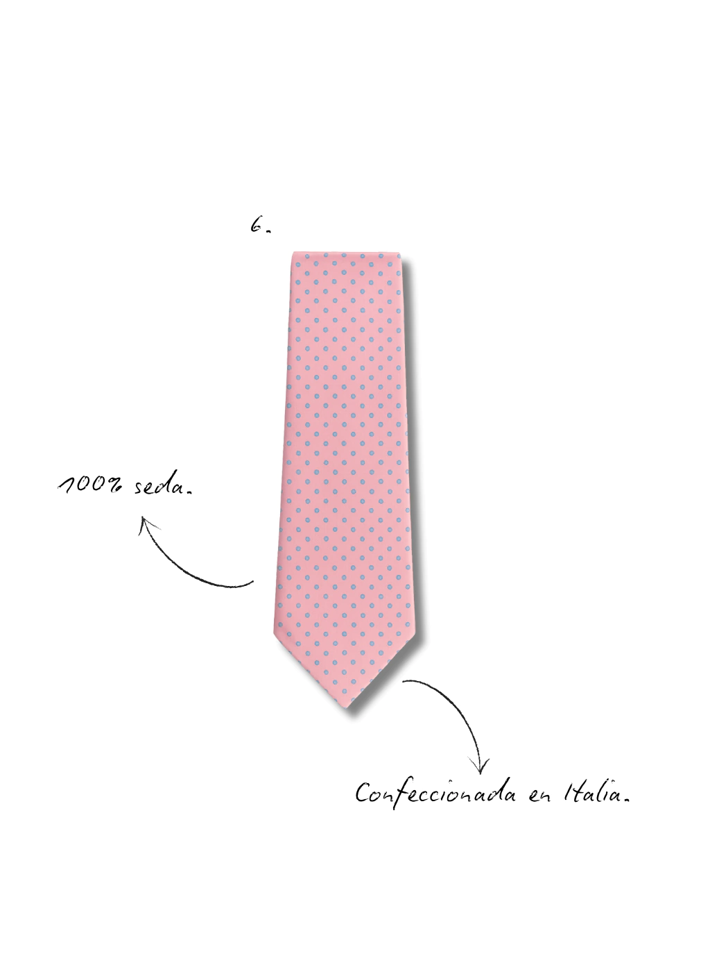 6. Rosa con lunares celestes. 100% seda, confeccionada en Italia.