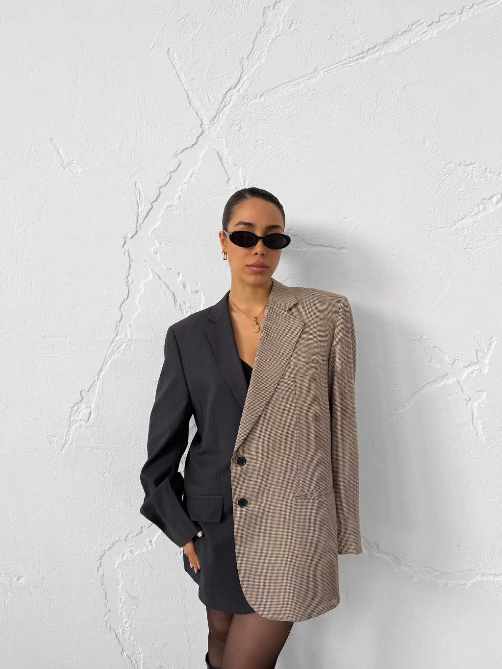 Descubrí el Duo Blazer La Nuit, una pieza de archivo que combina el poder del tailoring con la elegancia atemporal. Confeccionado a partir de dos blazers vintage diferentes, se les realizó un corte en la espalda a cada uno de ellos y se los unió fusionando dos colores y texturas para crear este diseño único. Presenta hombros estructurados, forrería interna satinada y botones a tono. Esta prenda fue seleccionada para formar parte de nuestro archivo por su calidad, terminaciones impecables y diseño atemporal.