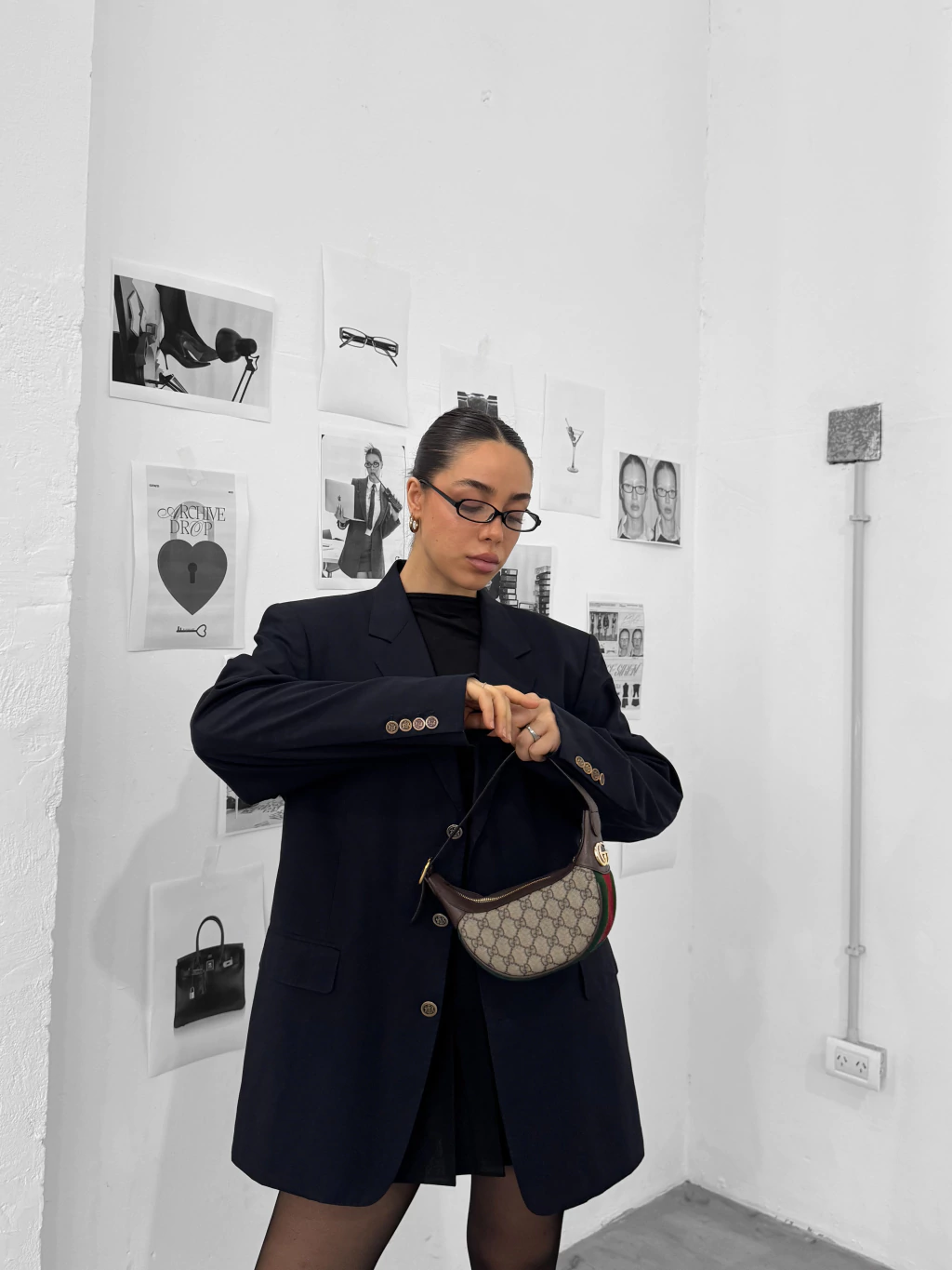 Descubrí el Blazer Glow, una pieza de archivo que combina el poder del tailoring con la elegancia atemporal. Confeccionado en Inglaterra por Royal Hugo Collections utilizando un blend de lana y cashmere de alta calidad en color azul oscuro, presenta hombros estructurados, forrería interna satinada y botones con detalles dorados. Esta prenda fue seleccionada para formar parte de nuestro archivo por su calidad, terminaciones impecables y diseño atemporal. Es precioso, de media estación. Trae botones de repuesto.
