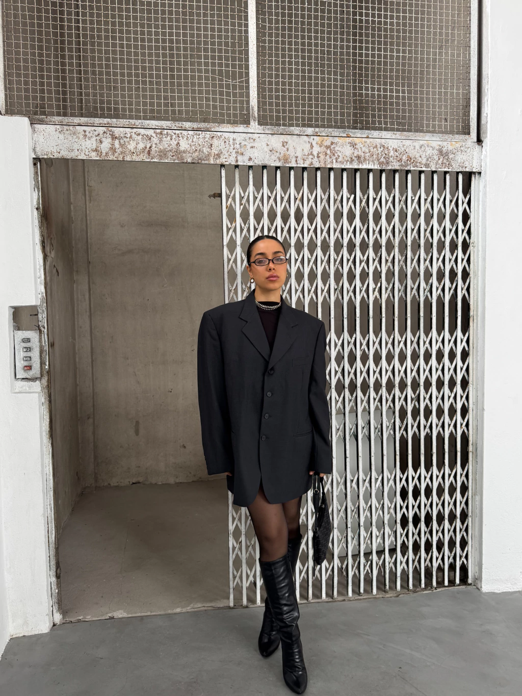 Descubrí el Blazer Lemon, una pieza de archivo que combina el poder del tailoring con la elegancia atemporal. Confeccionado en 55% lana en color gris oscuro, presenta hombros estructurados, forrería interna satinada y botones a tono. Esta prenda fue seleccionada para formar parte de nuestro archivo por su calidad, terminaciones impecables y diseño atemporal. Es precioso, tela clasica sastrera de media estación.