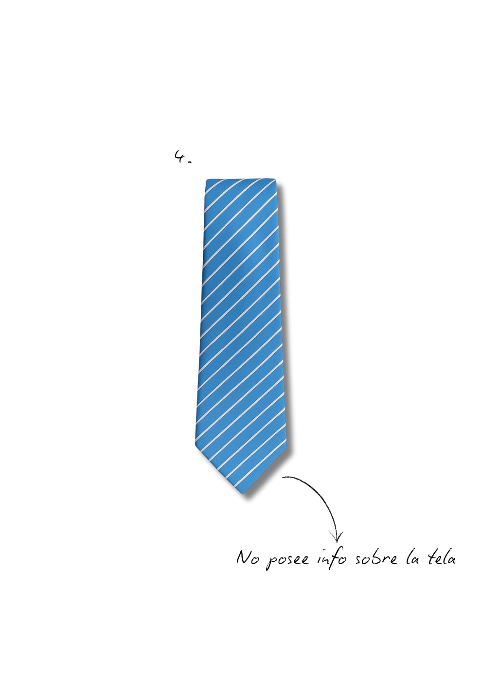 4. Azul claro con lineas diagonales blancas. No posee información sobre la tela.
