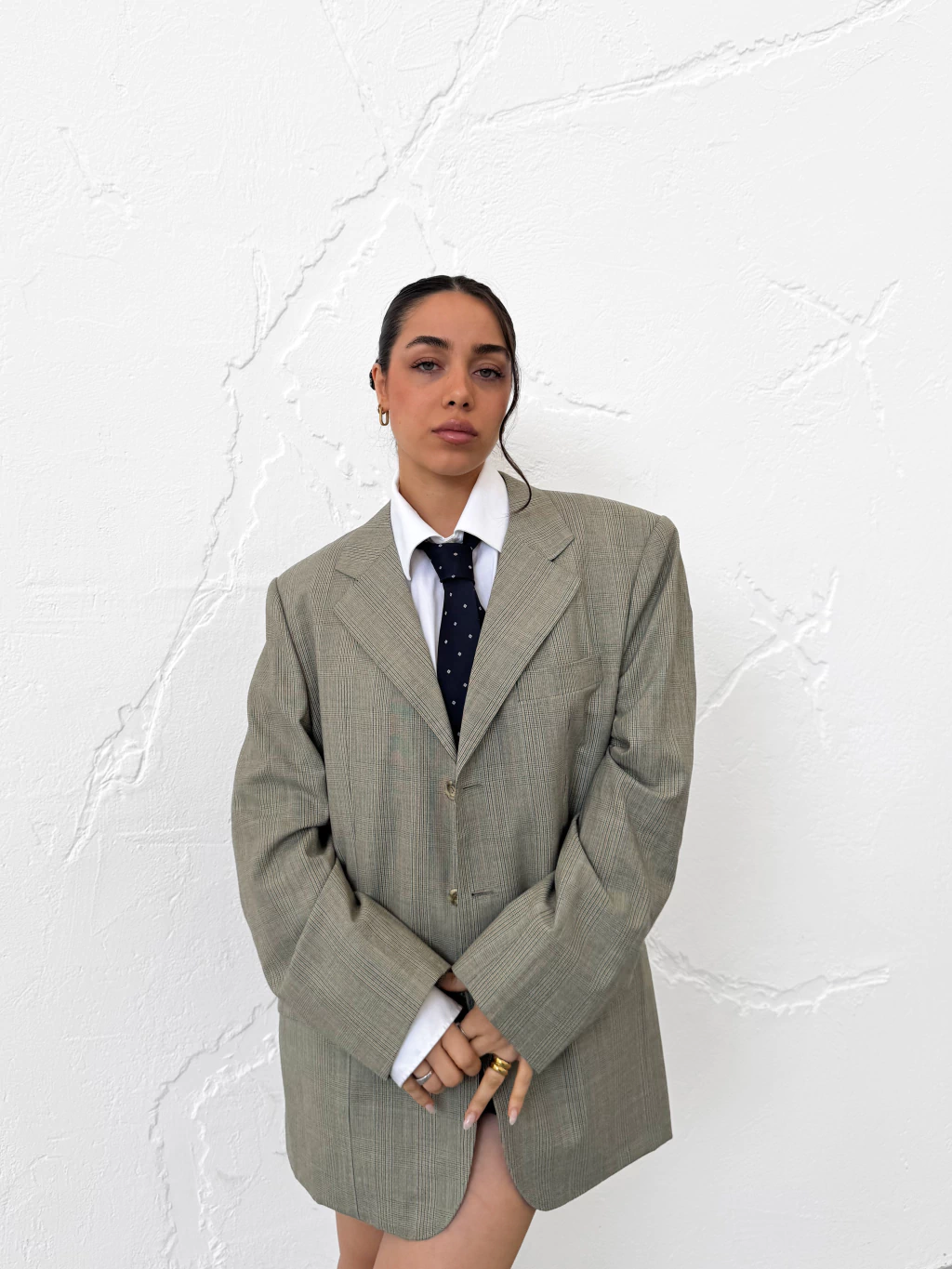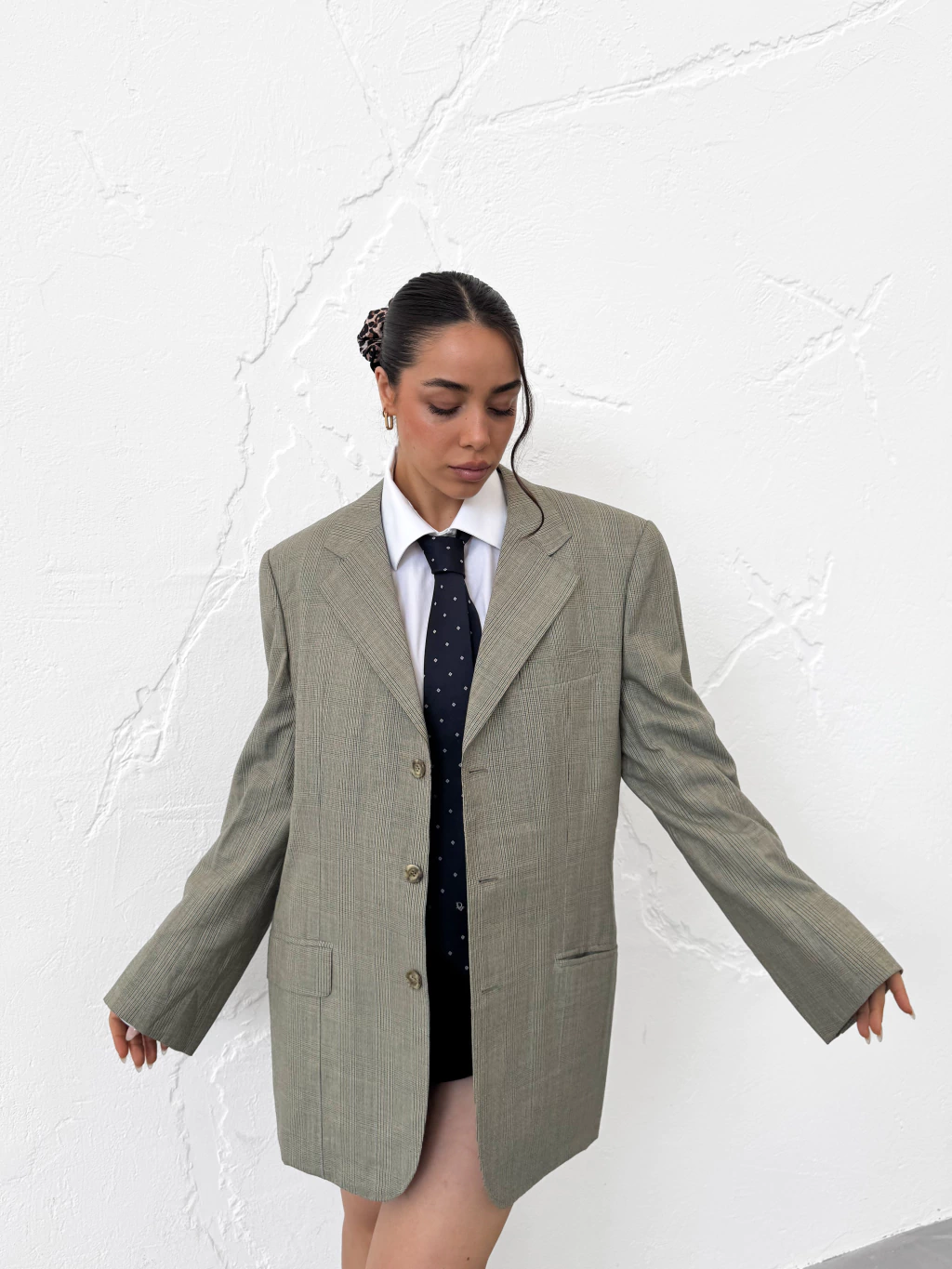 Descubrí el Bosco Vintage Blazer, una pieza de archivo que combina el poder del tailoring con la elegancia atemporal. Confeccionado utilizando textiles de alta calidad, con trama tipo Principe de Gales, donde se combina el color verde seco con detalles sutiles en beige, ladrillo y celeste. Presenta hombros estructurados, forrería interna satinada y botones color oro y azul. Esta prenda fue seleccionada para formar parte de nuestro archivo por su calidad, terminaciones impecables y diseño atemporal. La tela es clásica sastrera.